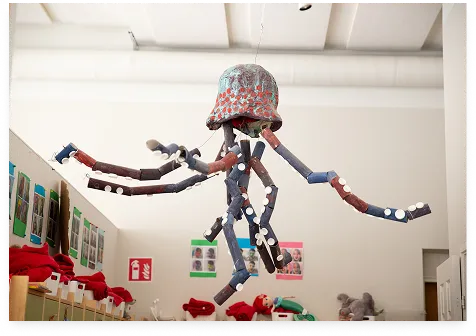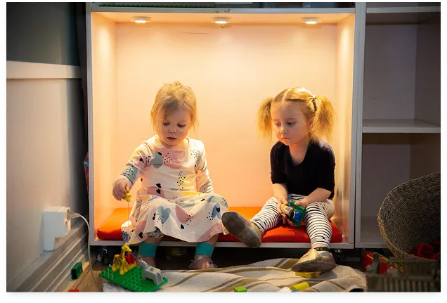 Rummet ger signaler till barnet om vad som förväntas, vilka möjligheter det finns till verksamhet, men framför allt att barnet står i centrum. Materialet finns på barnens nivå och barnens konstverk och konstruktionslekar värdesätts och får en framträdande roll i rummet.